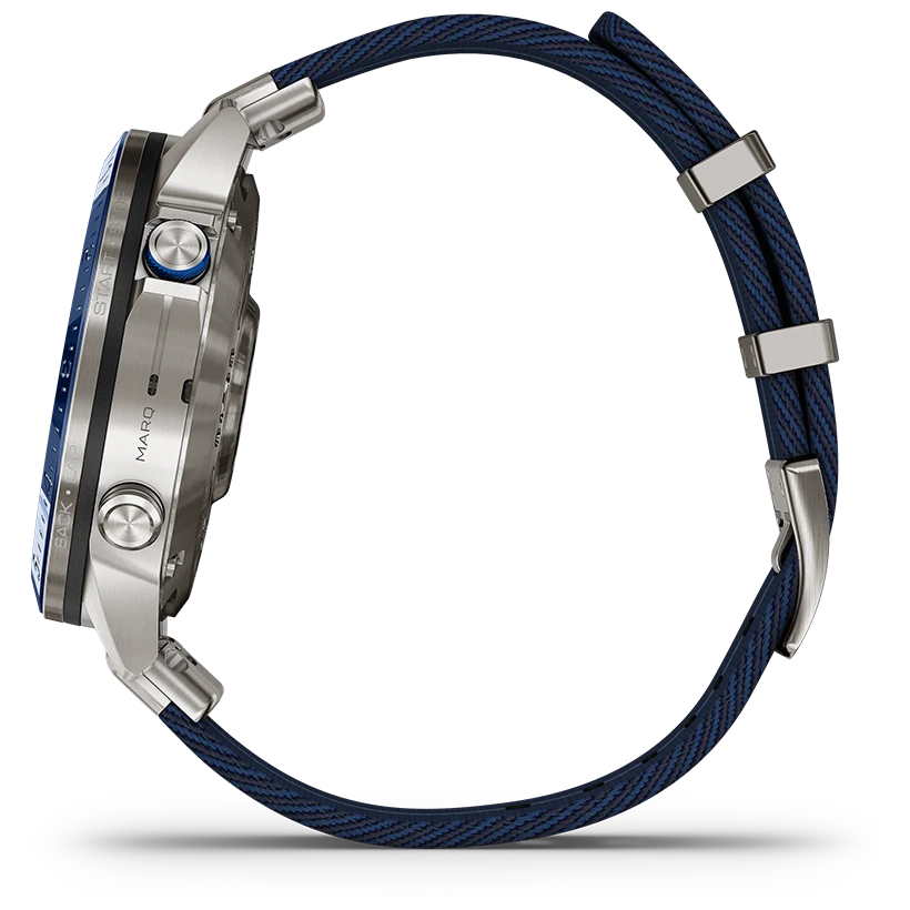 Garmin MARQ Captain är en kompromisslös lyxig tool watch för dig som lever vid, på och med havet. Med avancerade marina funktioner, premiumkonstruktion och marknadens mest intuitiva gränssnitt blir den en ovärderlig följeslagare på såväl öppet vatten som i vardagen. En klocka där modern teknik möter maritim elegans.